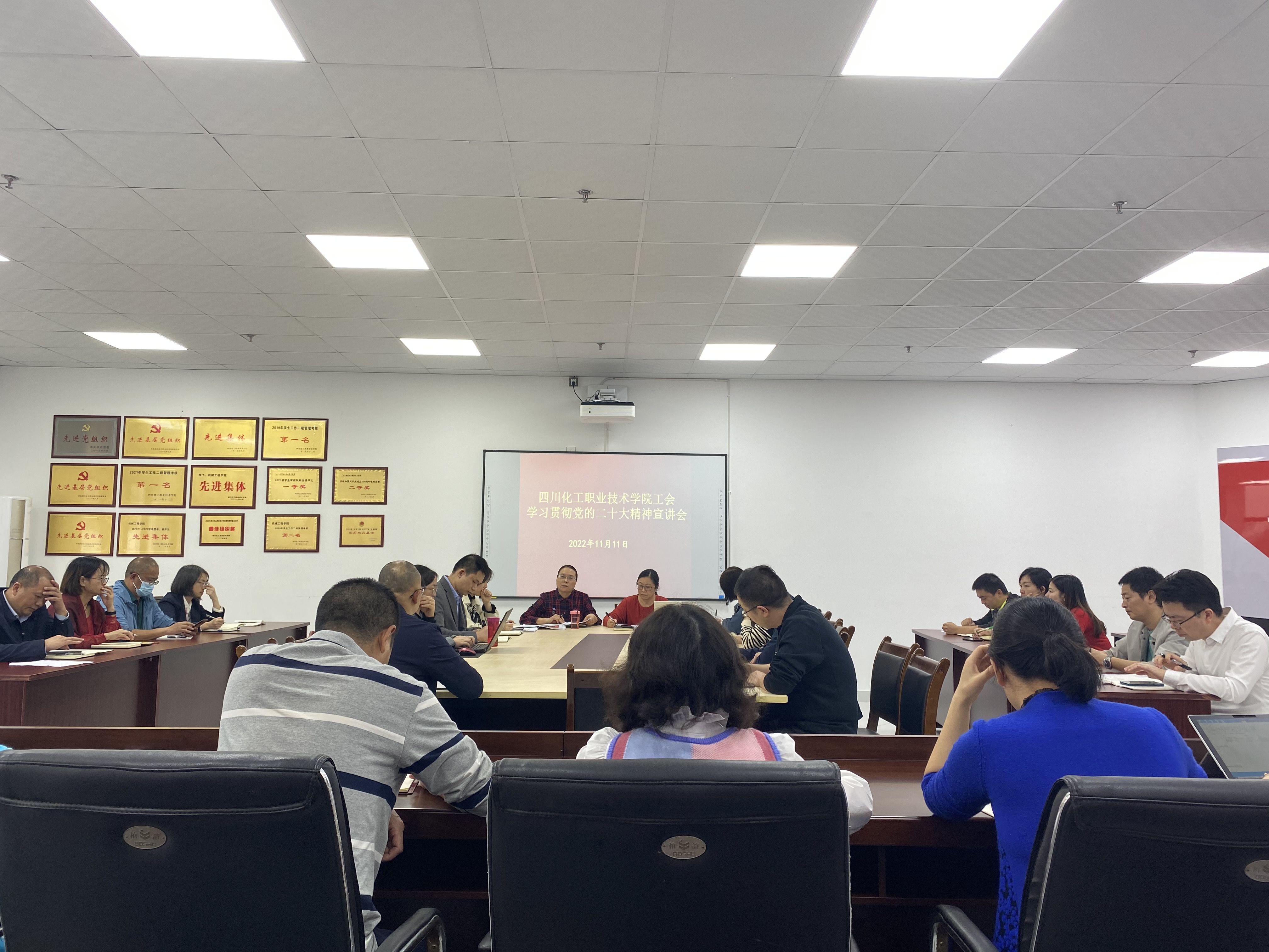 11月11日下午,学校工会在综合办公楼113会议室召开了学习贯彻党的二十大精神宣讲会,全校工会专兼职干部共40余人参加宣讲会。学校党委副书记、纪委书记、工会主席陈淑娟作宣讲。宣讲会由工会副主席刘咏梅主持。