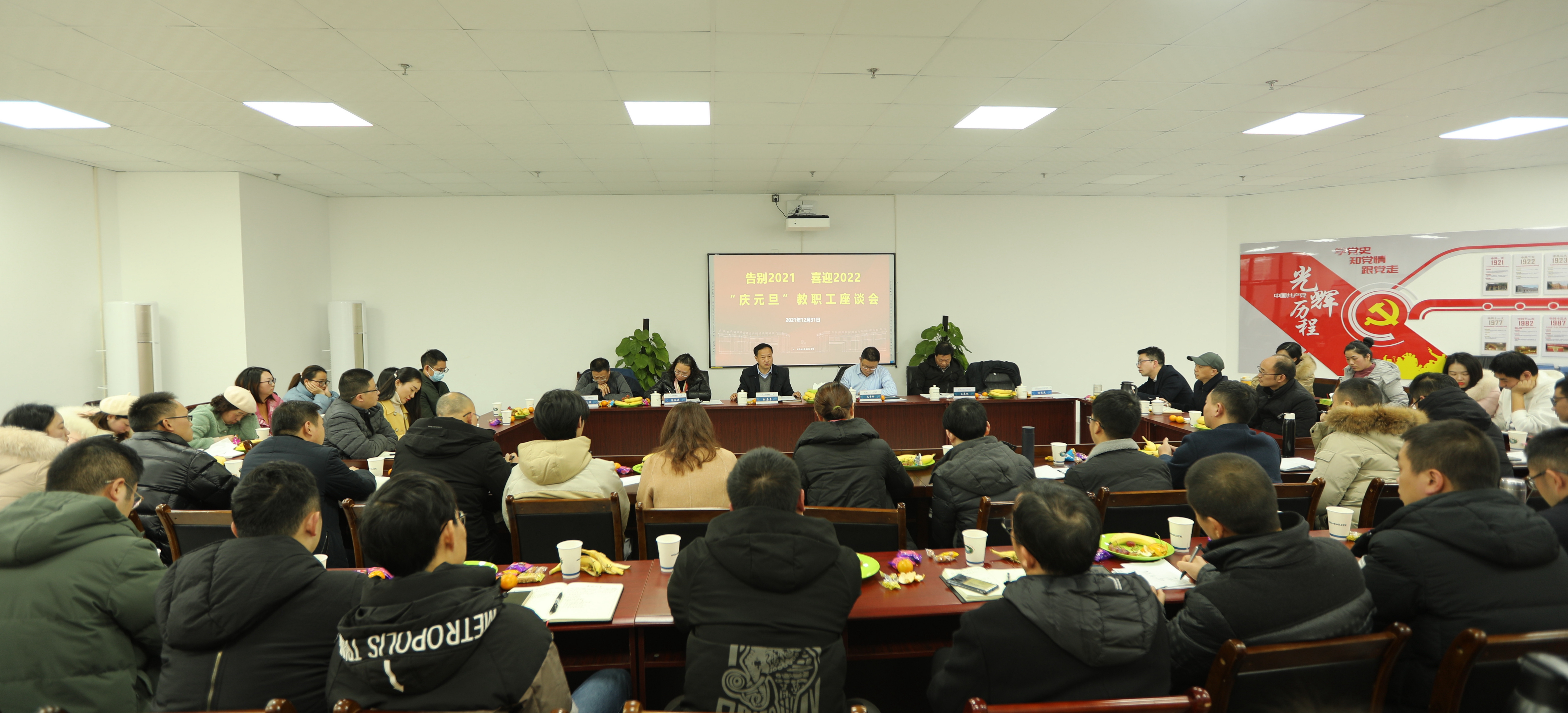 2021年12月31日下午,学校工会组织召开了“告别2021、喜迎2022”庆元旦教职工座谈会。学校党委书记刘志勇、院长文申柳,副院长王志斌、邓启华,院长助理谢光杰与全校60余名教工代表欢聚一堂,谈体会、话发展,喜迎2022年的到来。座谈会由学校党委副书记、纪委书记、工会主席陈淑娟主持。